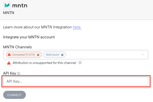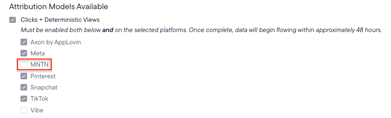 After connecting your API key in Northbeam, you’ll need to enable the integration from within your MNTN account to complete the setup.